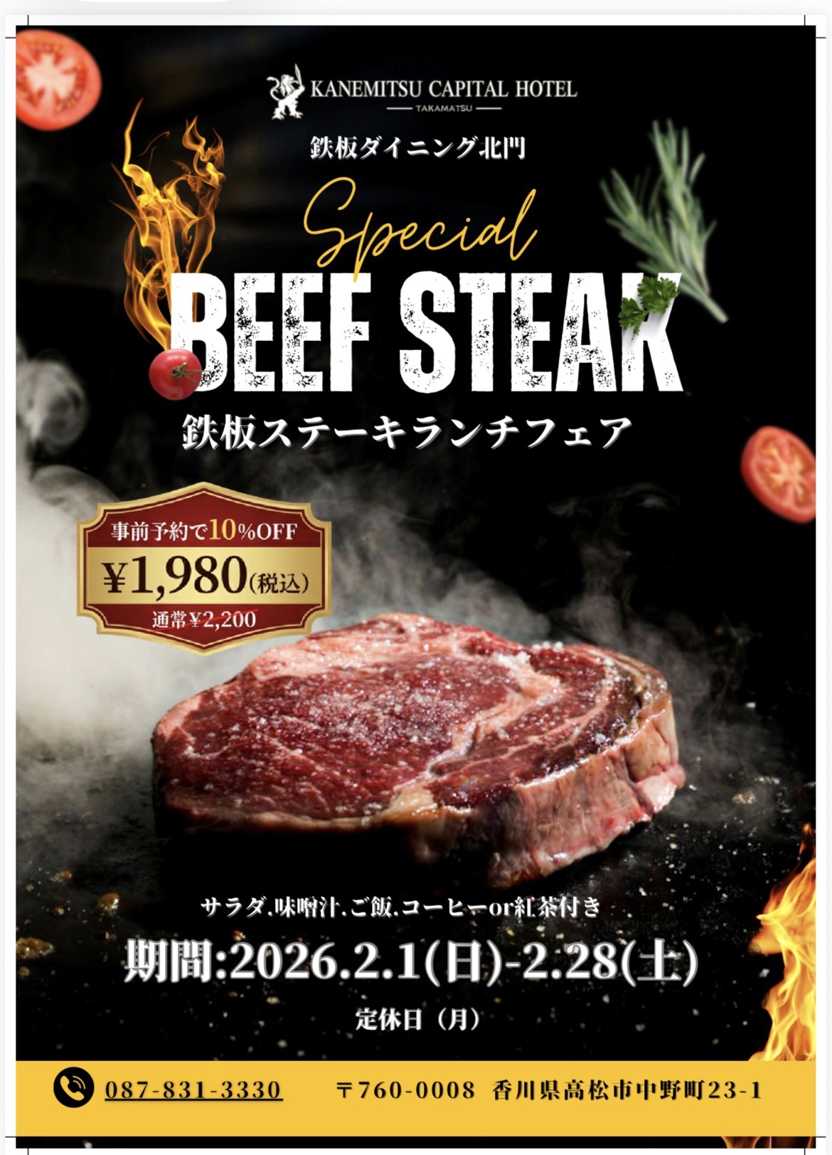 カネミツキャピタルホテル 市川 智久さん【鉄板ステーキランチフェア 2月1日(日)~2月28日(土)】